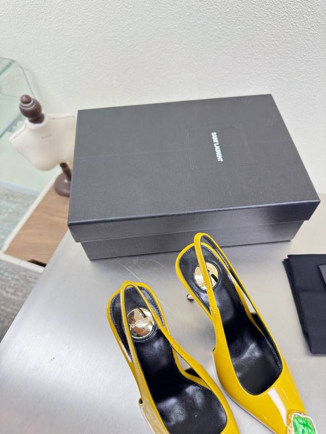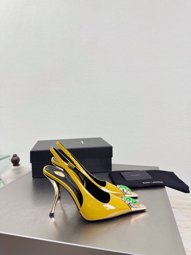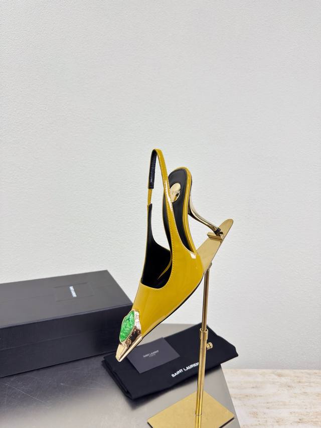 YSL Jewelry Series Open Back High Heels Ddd 10.5 Cm Heel Height Ddd Yvette Saint Laurent Logo Ddd Exquisite High Heels Ddd Ginger Yellow Calf Patent Leather with Green Jewels Ddd The most understanding of women's hearts, YSL's flawless shoes support an aura Ddd Noble temperament Ddd Imported sheepskin lining for a comfortable fit Ddd Italian imported genuine leather outsole Ddd Sizes: 35 36 37 38 39 40 41 40 41 Order Ddd Comes with boutique packaging Ddd
